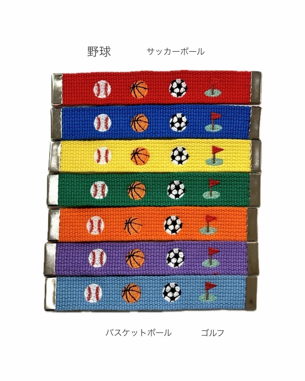 生地、文字の刺繍糸、ボタン、金具、スポーツのモチーフをお選びいただきます。