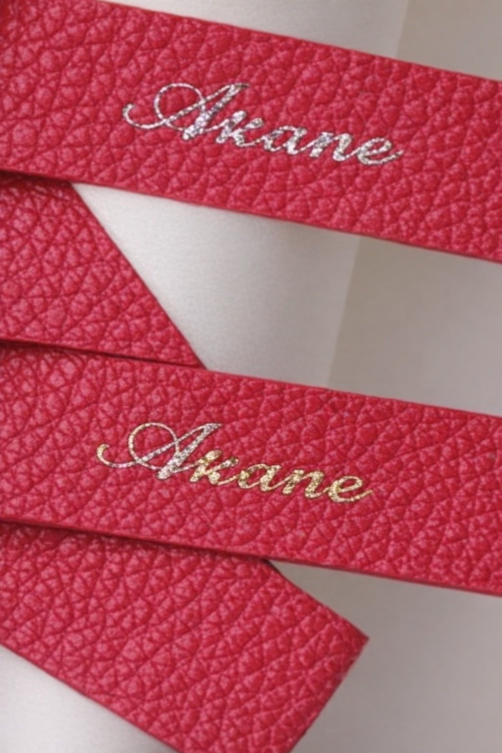 が特徴のレザーネームチャームです。